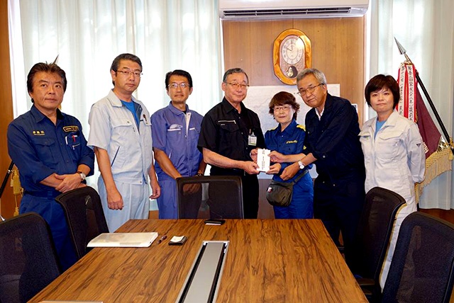 JAでは、竹永忠夫副組合長に党県委員会と地区委員会からの義援金を手渡して懇談。竹永氏は農地や果樹園に泥が堆積しているがボランティアの手が足りない、果樹園までの道が崩落し収穫や消毒ができない、など農家の苦境を訴えました。